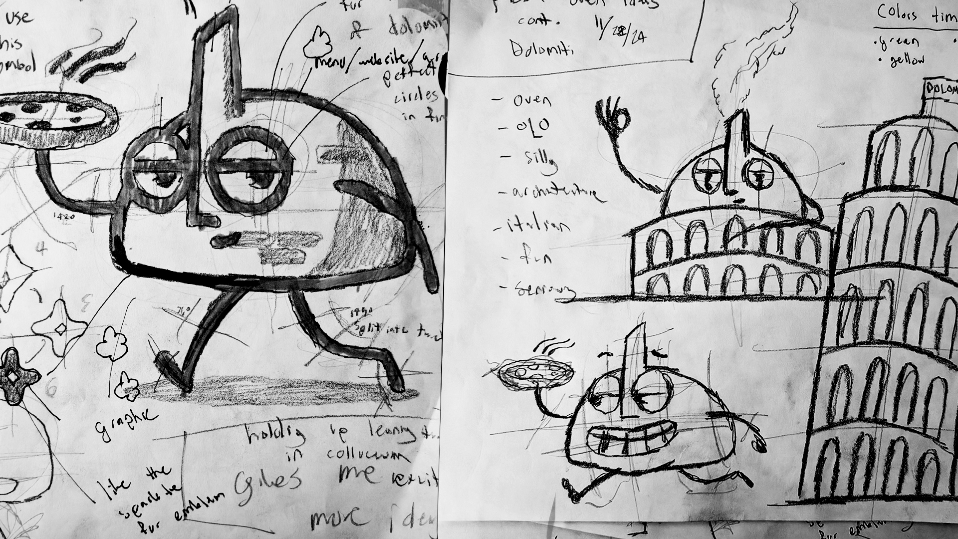 For a month I worked closely with the Dolomiti team to come up with a brand identity that fit their passion for food. I hope you enjoy flipping through the process / selected images and slides from the brand kit we developed. Working closely with the chef / owner we developed key colours, character ideas, and discussed where him and his team envisioned the business being 5-10 years down the line. After a series of sketches and ideas sessions, we came up with the official Dolomiti Pizza Oven Character, colour palate, iconography, logos, merch and more!
